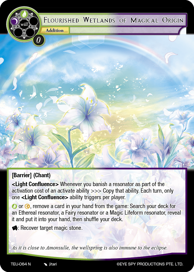 <Light Confluence> Whenever you banish a resonator as part of the activation cost of an activate ability >>> Copy that ability. Each turn, only one <Light Confluence> ability triggers per player.