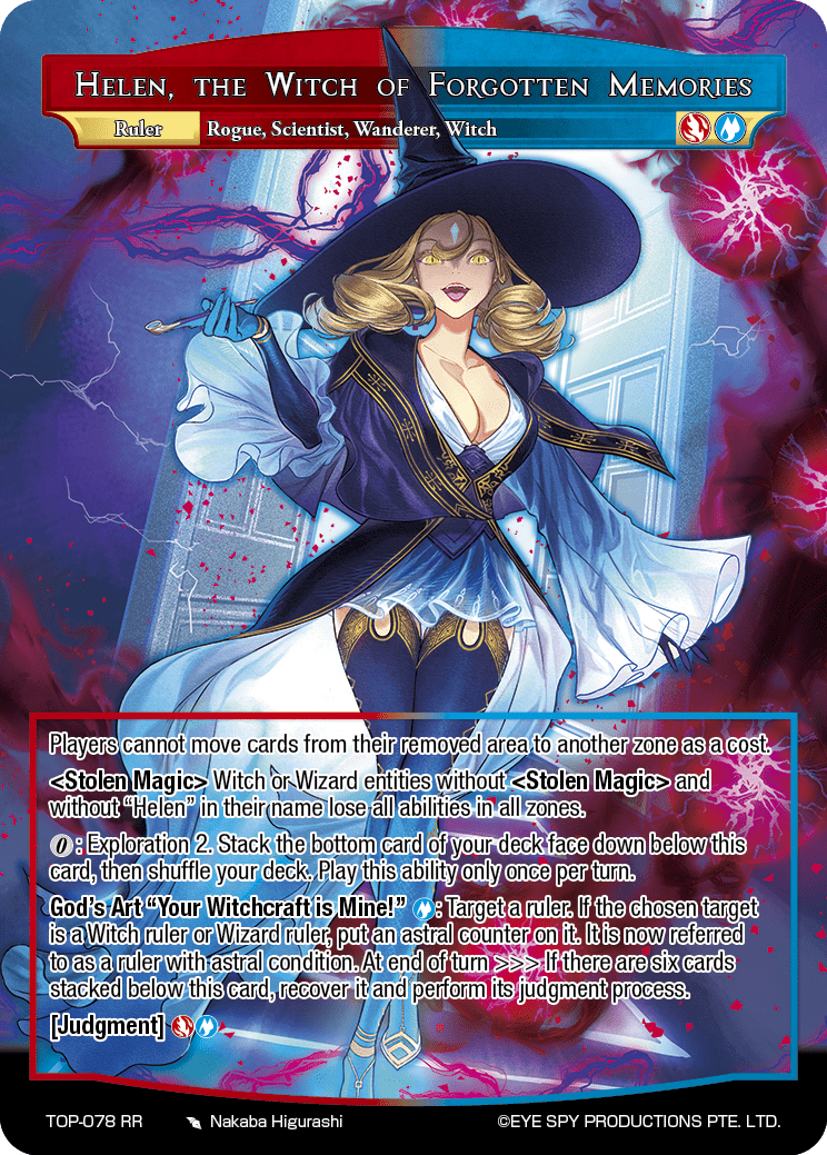 God's Art "Your Witchcraft is Mine!" [B]: Target a ruler. If the chosen target is a Witch ruler or Wizard ruler, put an astral counter on it. It is now referred to as a ruler with astral condition. At end of turn >>> If there are six cards stacked below this card, recover it and perform its judgment process.