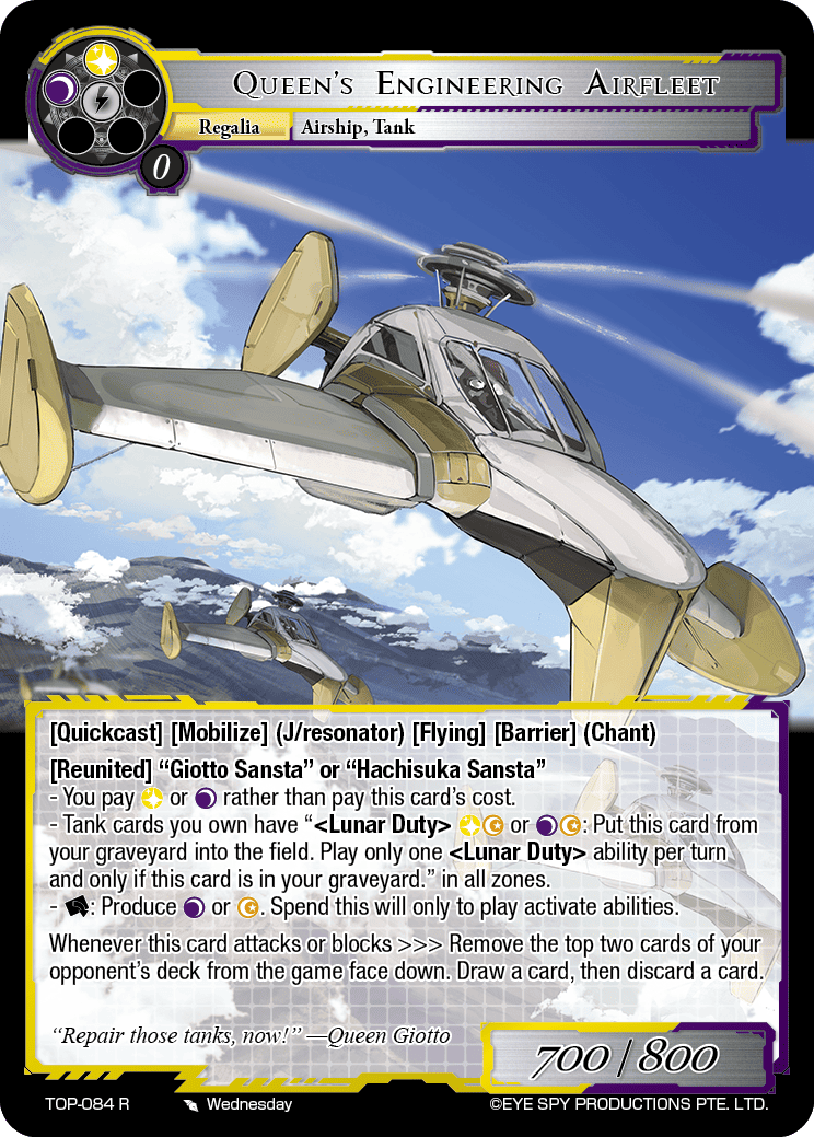 - Tank cards you own have "<Lunar Duty> [W][M] or [D][M]: Put this card from your graveyard into the field. Play only one <Lunar Duty> ability per turn and only if this card is in your graveyard." in all zones.